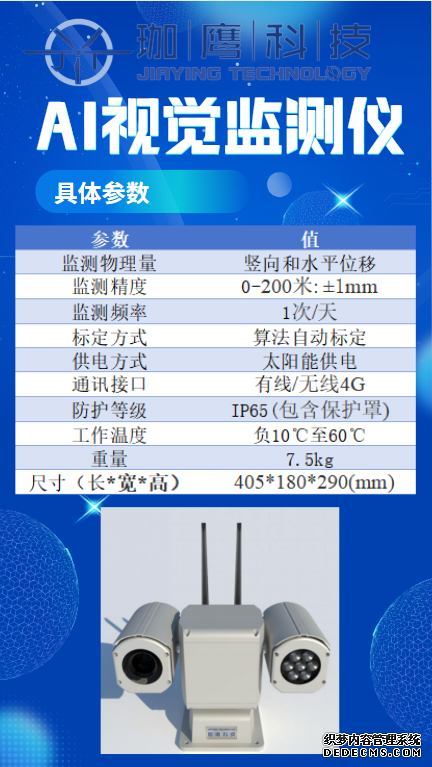 為保證項目的施工安全,必須對邊坡進行監測。在此次項目中,珈鷹依托公司自主研發的AI視覺監測儀及數字化平臺,通過高精度的工業相機、實時數據傳輸以及智能化的數據分析系統,對邊坡進行全天候、自動化、實時的監測和預警。