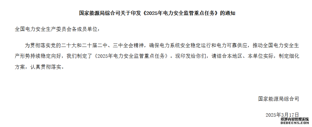 這一系列數(shù)據(jù)反映出我國經(jīng)濟的蓬勃活力與社會發(fā)展的強勁動力,同時也對電力安全提出了更高的要求。國家能源局綜合司印發(fā)的《2025年電力安全監(jiān)管重點任務(wù)》中指出,要進一步完善電力安全監(jiān)管體系,推進電力安全監(jiān)管重點工作,落實電力安全監(jiān)管工作措施。基本目標是:杜絕重大以上電力人身傷亡事故、杜絕較大以上電力安全事故、杜絕水電站大壩垮壩漫壩事故,努力降低事故起數(shù)、傷亡人數(shù),確保電力系統(tǒng)安全穩(wěn)定運行和電力可靠供應(yīng)。