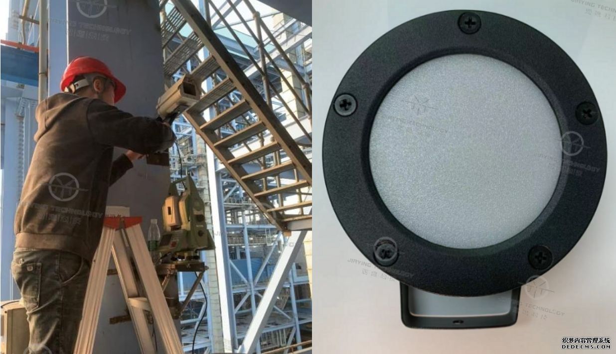檢測人員將相機安裝在相對穩(wěn)定的區(qū)域,并配合反光標靶,便于夜間觀測。相機與標靶距離控制在10 -50m,監(jiān)測頻率高達1Hz,監(jiān)測精度可達0.5mm,能夠精準測量除塵設(shè)備支架的水平位移和沉降情況。