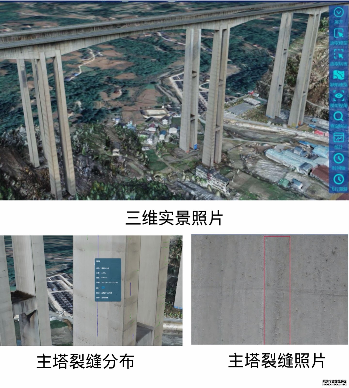 無人機融合室內定位和北斗/GPS定位技術,搭載自研專用相機,實現對橋梁底部、支座、橋塔、橋索以及周邊山體全覆蓋,高效率的高清圖像采集